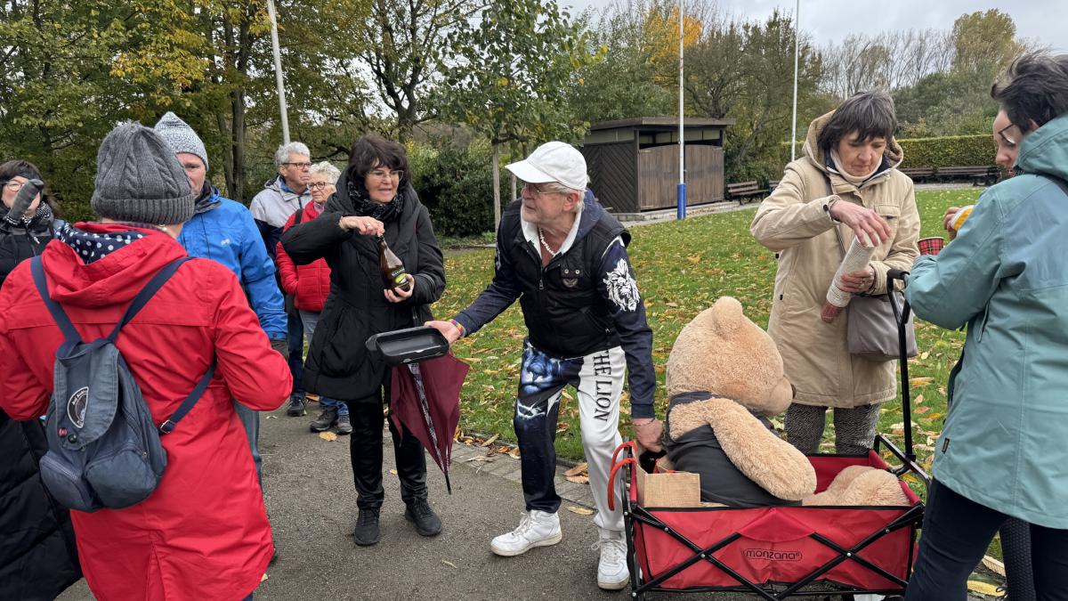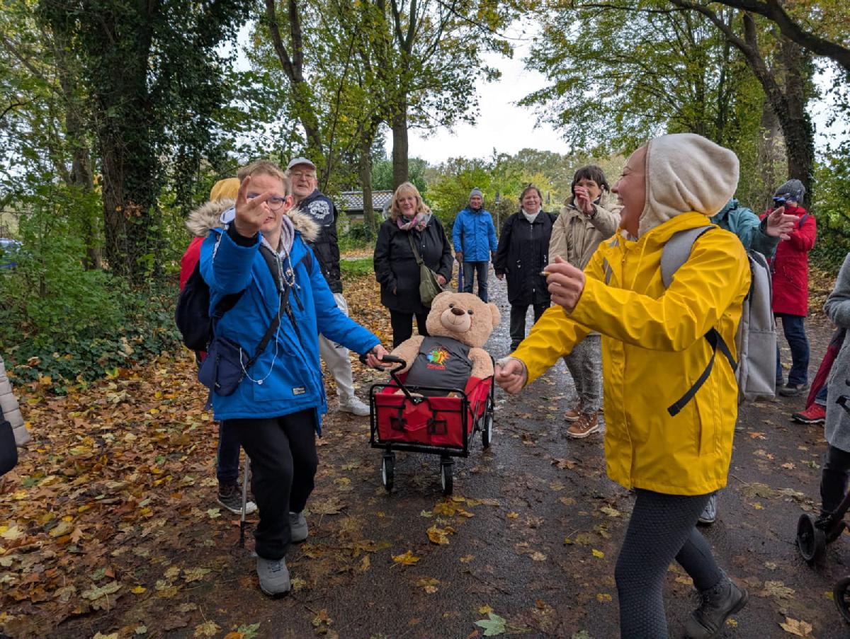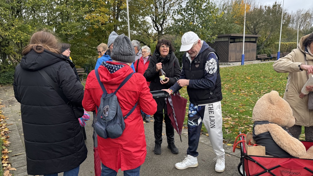Ob kurze Strecke durch die Kleingartenanlage, oder die etwas längere Strecke zum Stadtteilpark Hassel – alle zogen tapfer los. Besonders Peters Zumba-Gruppe sorgte mit Musik, Bollerwagen und flüssiger Motivation für ordentlich Stimmung. Da tanzte der Regen quasi mit!